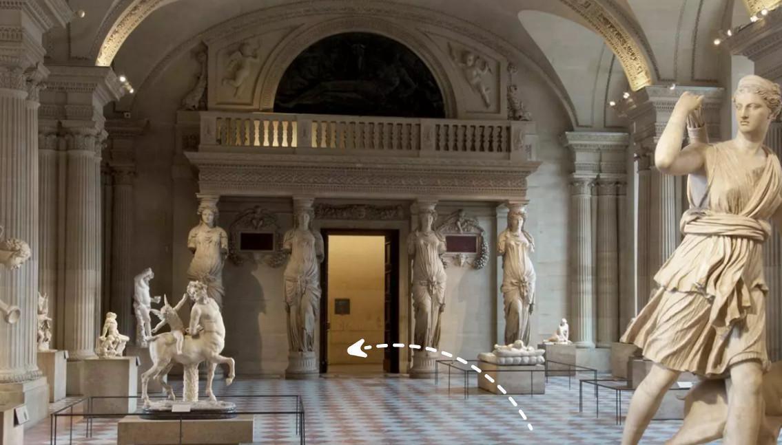 ⬆️ Gehen wir nun unter dem Balkon und diesen wunderbaren Skulpturen hindurch und nach links.